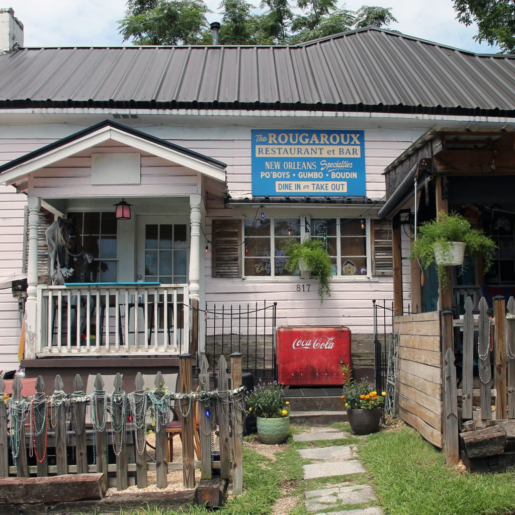 And yet somehow, the Rougaroux is a family neighborhood joint. Bored toddlers in strollers pick at baskets of fried shrimp with their parents at the outdoor tables. Service industry workers shoot whiskey and sip beer at the bar. Accountants in golf shirts stand in the ordering line with Goth kids and grandmas. Someone’s uncle is getting loud and holding court. They get busy.